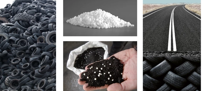 VESTENAMER®は、タイヤ、機械用ゴム製品、アスファルトの添加剤および相溶化剤として使用され、ゴムのリサイクルに重要な素材です。